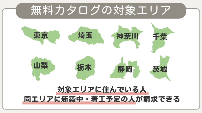 ちなみに無料請求できるのは、以下の対象エリアに住んでいる人、もしくは同エリアに新築中・着工予定の人限定となっています💡