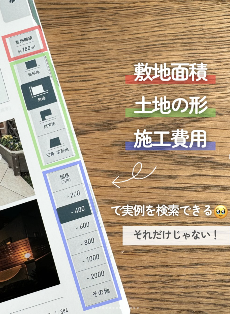 たくさんのオシャレな事例から「自分の好き!」を見つけられるだけでなく、外構の知識まで増える神カタログです!